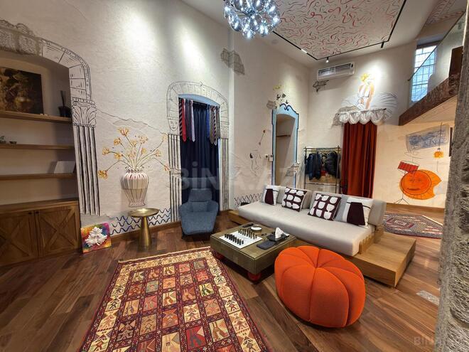 Şəhərin ən tarixi və prestijli ərazisi olan İçərişəhərdə yerləşən bu eksklüziv 2 mərtəbəli ev satışa təqdim olunur. Ümumi 3 otaqdan ibarət olan mənzil xüsusi zövqlə, incəsənətlə məşğul olan sahib tərəfindən peşəkar rəssam və dizaynerlərin iştirakı ilə təmir olunub.